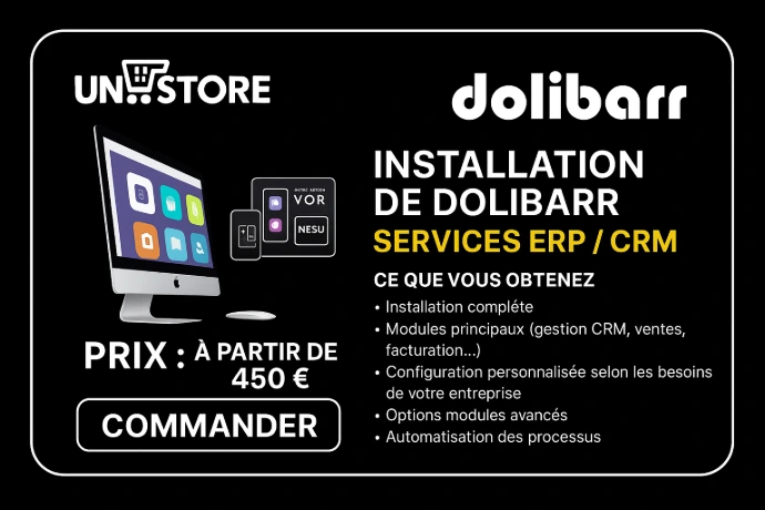 Je vous propose une installation professionnelle et complète de Dolibarr ERP/CRM, la solution open-source idéale pour les PME, entrepreneurs, associations et structures en croissance.