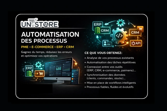 En cliquant sur Démarrer mon projet, vous nous partagez votre vision et vos contraintes. Unistore analyse votre projet et construit une prestation 100 % personnalisée qu’il s’agisse de web, e-commerce, ERP ou automatisation pour garantir un résultat fiable, rentable et durable.